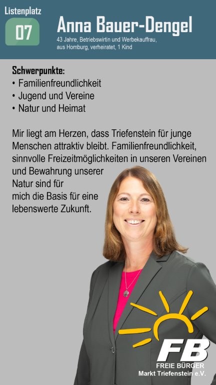Mir liegt am Herzen, dass Triefenstein für junge Menschen attraktiv bleibt. Familienfreundlichkeit, sinnvolle Freizeit-möglichkeiten in den Vereinen und Bewahrung unserer Natur sind für mich die Basis für eine lebenswerte Zukunft.